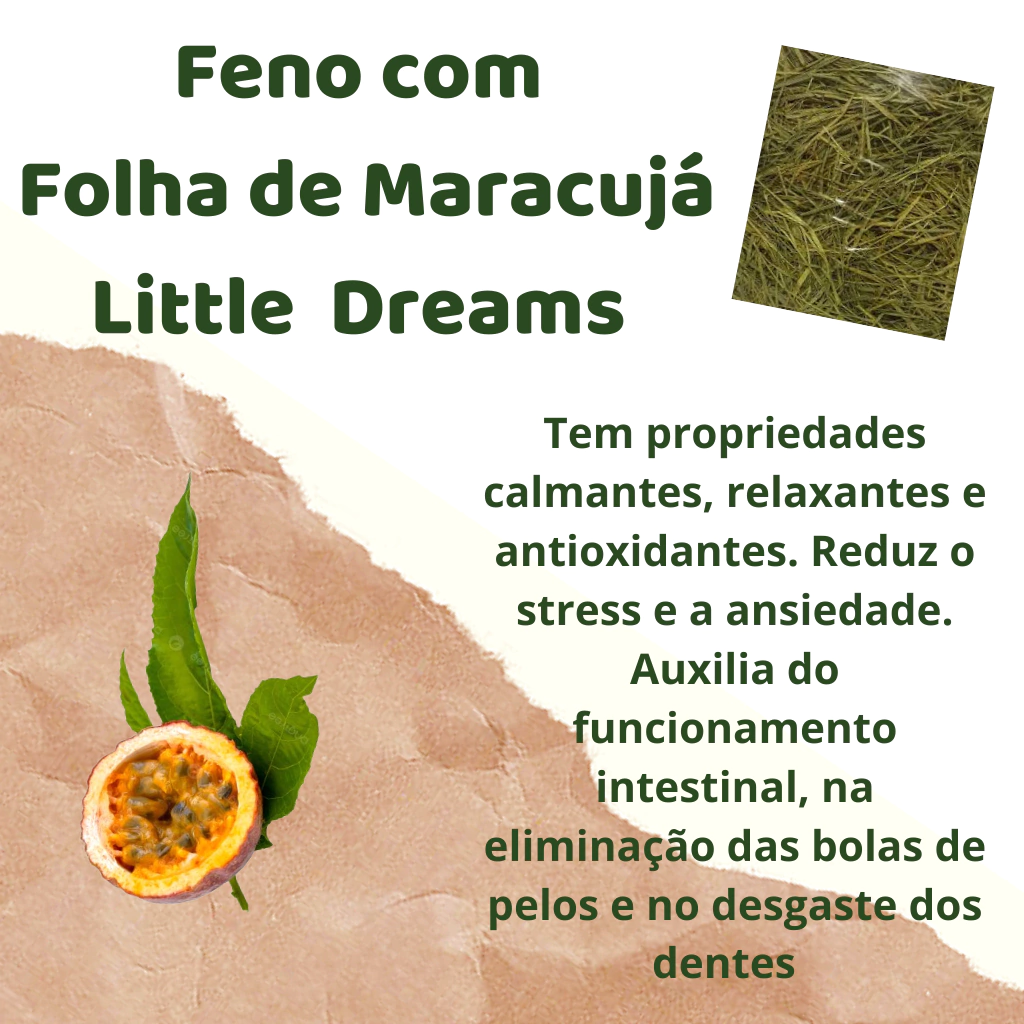 Pacote de feno tipo A de 400 gramas com folhas de maracujá.